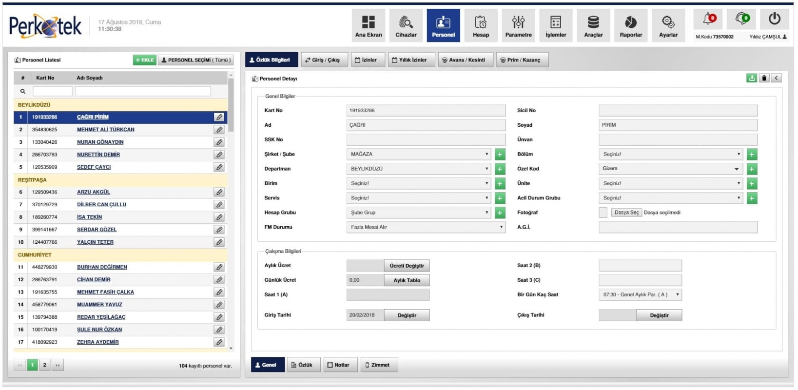 - Personele özel olarak zorunlu mesai tanımı yapılabilmektedir.